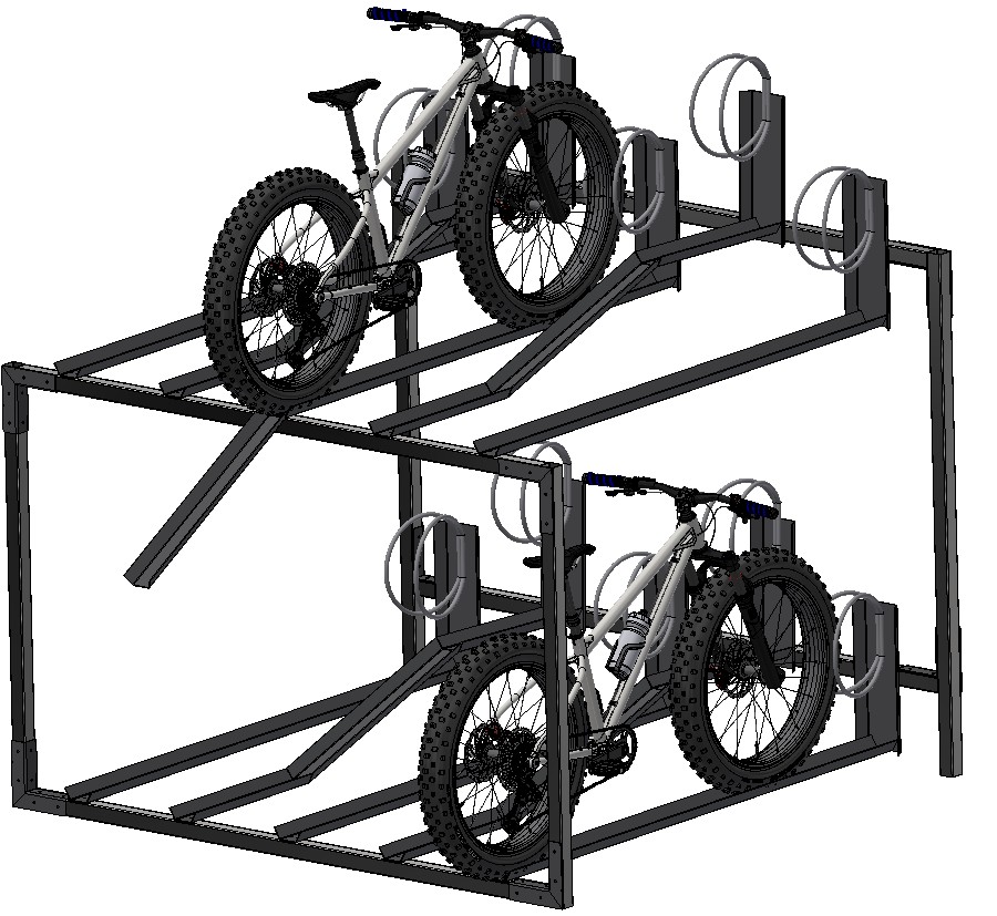 Etagecykeloverdækning i varmgalvaniseret stål i to etager – en modulbaseret løsning. Standardmål er 2 x 2 meter, men den kan tilpasses efter behov. Konstruktionen er robust, vejrbestandig og kræver minimal vedligeholdelse. Perfekt til skoler, virksomheder og institutioner, der ønsker en elegant og funktionel overdækning.